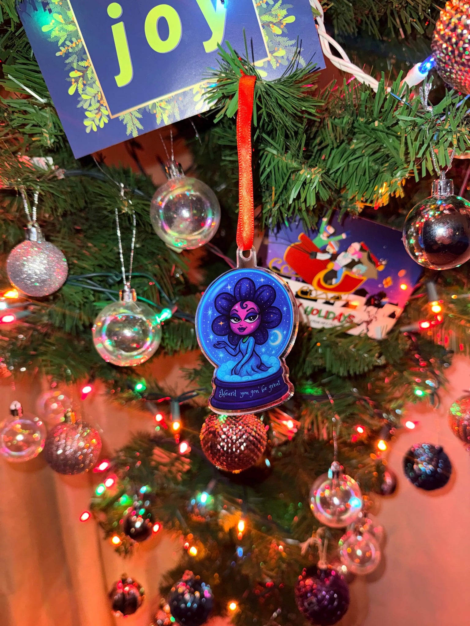 Bring a little northern-lights magic to your holiday décor with the Borealis Bloom Pea Acrylic Ornament. This shimmering piece captures her dreamy snow-globe world — soft aurora colors, moonlit glow, and a peaceful winter calm — all suspended in a crystal-clear finish. It’s a small touch that transforms your tree, workspace, or home display into something enchanted.