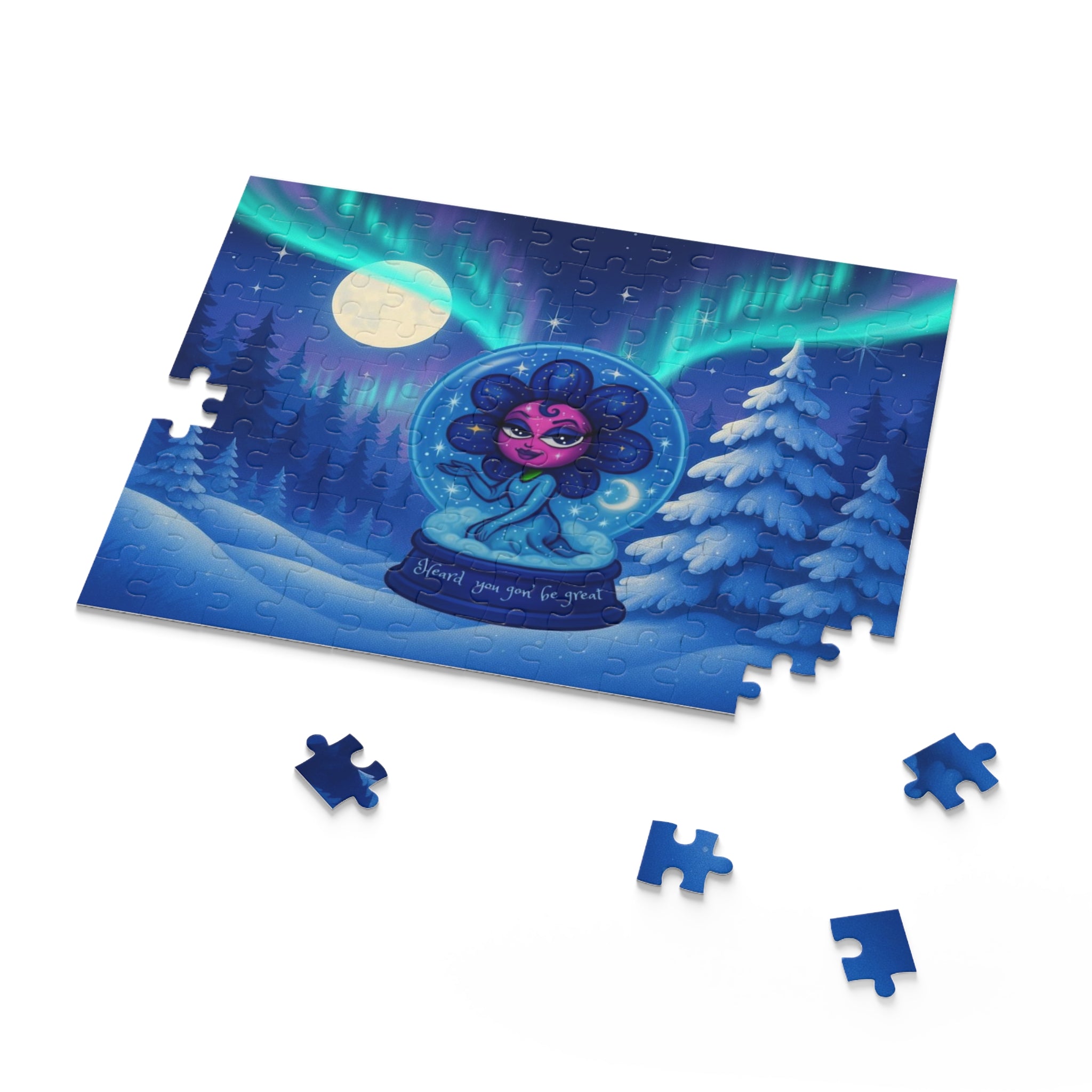 Each puzzle is made with sturdy chipboard pieces that fit cleanly and hold their shape. The glossy finish makes the artwork shine — from the deep winter blues to the shimmering aurora ribbons. Whether you're working solo or with loved ones, the puzzle feels smooth, vibrant, and incredibly rewarding to complete.